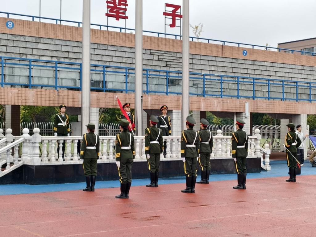 710分,全体师生整齐列队,向国旗行注目礼,在激昂的国歌声中,五星红旗冉冉升起,拉开了升旗仪式帷幕。