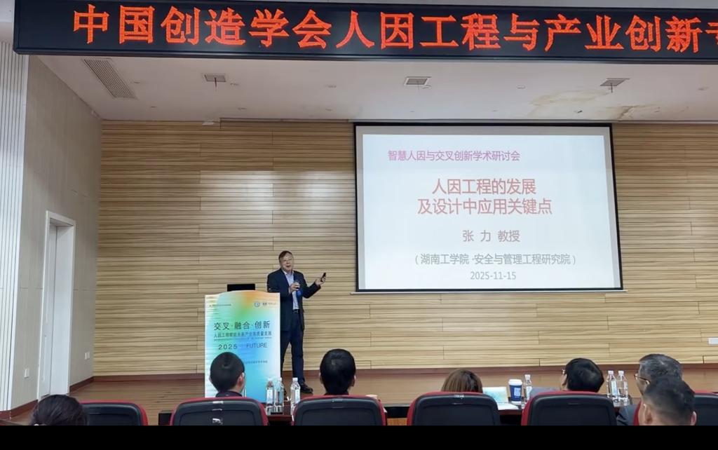 20251115日,由中国创造学会人因工程与产业创新专业委员会主办的智慧人因与交叉创新学术研讨会在衡阳举行,会议以“交叉·融合·创新——人因工程赋能未来产业高质量发展”为主题汇集了来自复旦大学、浙江大学、北京理工大学、湖南大学、南华大学best365唯一官方网站等高校、各科研院所企业200位专家学者。我院张力教授受邀出席会议,与复旦大学林燕丹教授共同担任会议主席。会上,张力教授还受邀作会议主旨报告《人因工程的发展及设计中应用关键点》,报告内容兼具理论高度与实践指导意义,受到与会专家的热烈反响。(文、图/陈帅 审稿人/一审:陈帅 二审:青涛 三审:胡鸿)