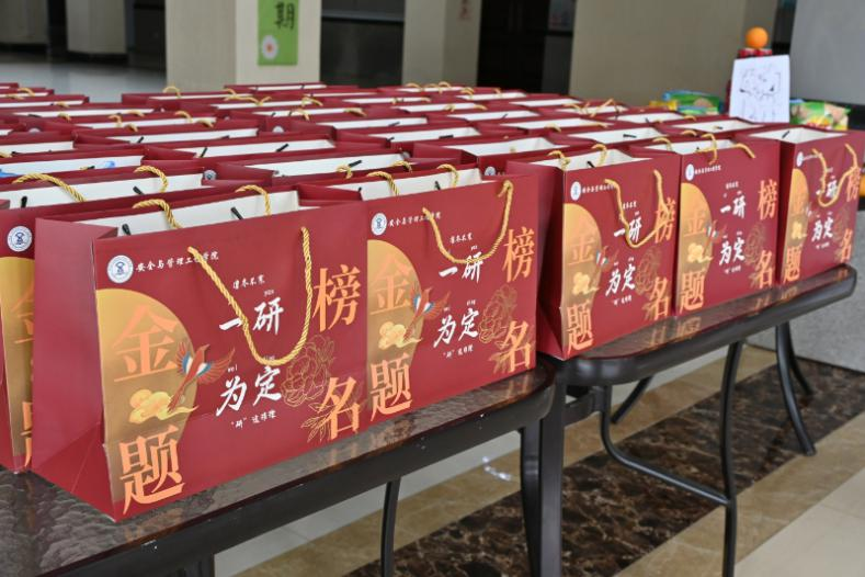 活动现场温情洋溢,同学们接过助力包后纷纷表达感谢。一位考研学生表示:“学院的关怀让我们倍感温暖,也增添了前行的动力。我们一定会全力以赴,不负期望。”