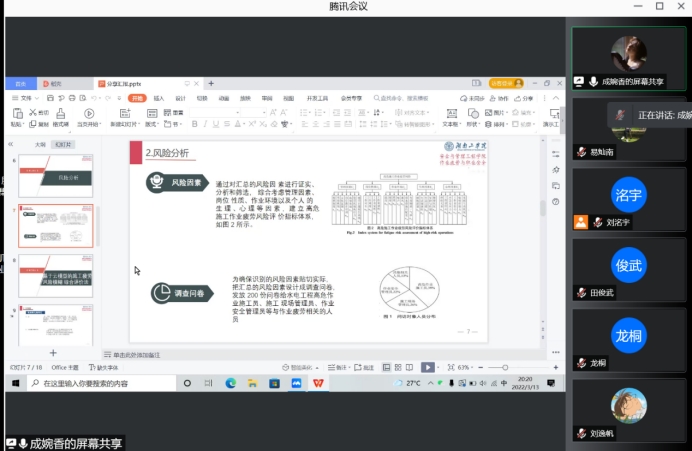 为响应《安全与管理工程学院、人因与安全工程研究院本科生导师制实施办法》并进一步吸引、培养大学生参与创新创业项目,安全与管理工程学院易灿南老师于3月13日19:30-21:00组织开展了团队本学期第二次线上文献阅读分享汇报会。易灿南老师、作业疲劳与职业安全研究方向的部分同学和南华大学部分研究生等共25余人参与了本次会议。