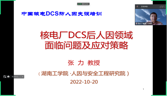 培训于2022年10月20日以视频方式线上进行,中国核电公司相关部门和企业人因领域专业技术人员及管理人员100余人参加。张力教授讲解了核电人因领域的起缘与发展历程,阐述了人因若干重要概念的内涵,建立了核电人因领域框架,分析讨论了核电厂设计/改造期人因工程关键点和运行电厂人因管理面临的挑战,提出了核电厂DCS后防人因失误的若干建议。