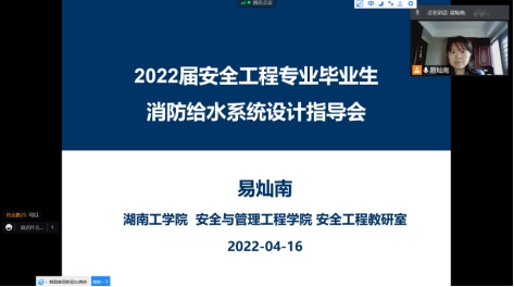 根据毕业生座谈会反馈信息以及毕业生毕业设计指导中存在的问题,安全工程教研室易灿南于4161500-1630通过腾讯会议进行了一场《2022届安全工程专业毕业生消防给水系统设计指导会》,60多名毕业设计中涉及消防给水系统设计的毕业生参与了此次讲座。