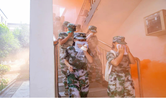 在消防官兵的指导下,best365官网新生轮番上阵,学习并操作使用了高压水枪,亲身体验了使用灭火器进行油盆灭火,在疏散逃生演练中学习了用湿毛巾捂住口鼻,弯腰低姿沿着楼道、楼梯迅速通过安全出口有序撤离的火灾逃生技巧,将所学的消防安全知识学以致用。为了让新生更直观了解火场逃生的应对措施,参训新生分批次进入火场烟雾逃生帐篷,在烟雾缭绕的帐篷内感受火灾发生时的模拟状态,真实的感受了一场火灾现场的感觉。活动的最后还组织参训新生观看了火灾警示教育片。