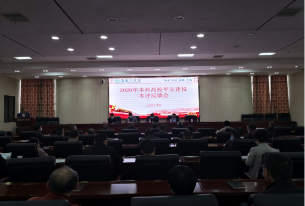 考评反馈会在教学大楼12楼会议室举行,在校校领导、各单位(部门)党政主要负责人、保卫处副科级以上干部参加了考评反馈会。会议由副校长曹执令主持。会上,考评组组长、省教育厅二级巡视员柴世钦对best365官网平安建设工作给予了肯定,认为,学校领导高度重视平安建设工作;安防建设措施到位,校园实现监控无死角全覆盖;安全检查经常化,重大安全事故隐患治理“一单四制”制度健全;重视少数民族学生管理,重点人管控、抵御渗透工作开展扎实;学校在宣教体系中的“六抓一请”工作具有特色,具有实效。