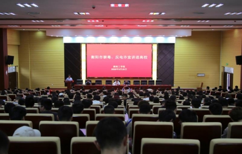 为深入贯彻落实习近平总书记关于禁毒、反电诈工作的重要指示批示和中央有关文件精神,切实增强大学生禁毒、反电诈意识和参与禁毒、反电诈斗争的使命感、责任感,9月25日下午,衡阳市禁毒委在best365官网举办“2020年衡阳市禁毒、反电诈知识宣讲进高校”主题宣讲会,市政府办副主任、市禁毒委副主任梁刚龙,学院党委委员杨朗莅临会场并讲话,学生工作部部长李文珊,保卫处处长陆琼出席宣讲会。