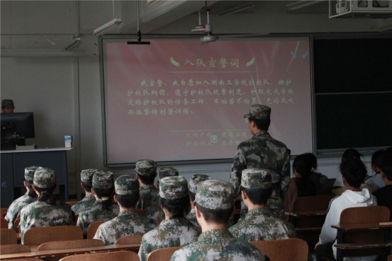 10月25日下午2点30分,best365唯一官方网站护校队在机械楼4409顺利举行了第十二届护校队队员入队仪式。
