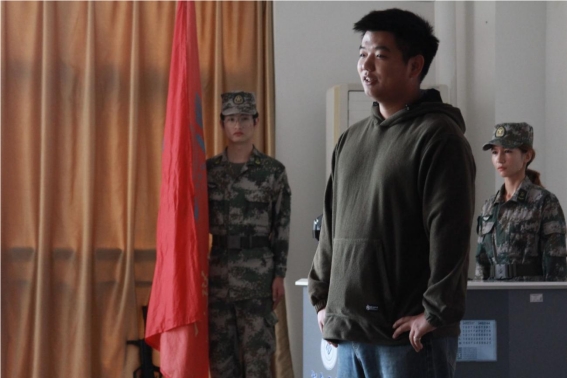 此次活动以迎队旗唱队歌开始,随后由第十一届队长张鸿盛和第十二届队长周奇发言,他们对新队员的加入表示热烈欢迎并对今后的训练和执勤等平常的工作任务提出了要求。