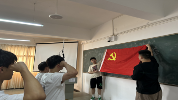 随后,发展对象和全体党员进行入党宣誓,他们高亢激昂,声音久久回荡在教室里,真正展现出了对党的崇高敬意。
