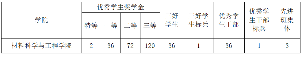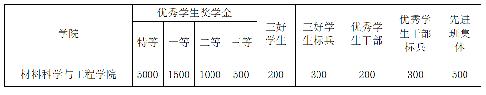 表2:材料科学与工程学院校级奖学金奖励标准