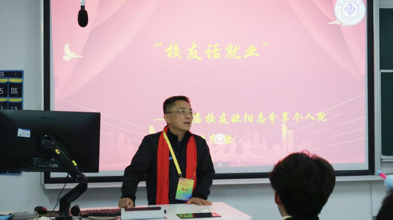 互动提问环节中,现场学生积极发言,围绕岗位挑选、行业入门要求等问题踊跃提问。欧阳志细致耐心地一一回应,结合自身职业历程提出具体建议,现场交流气氛活跃。