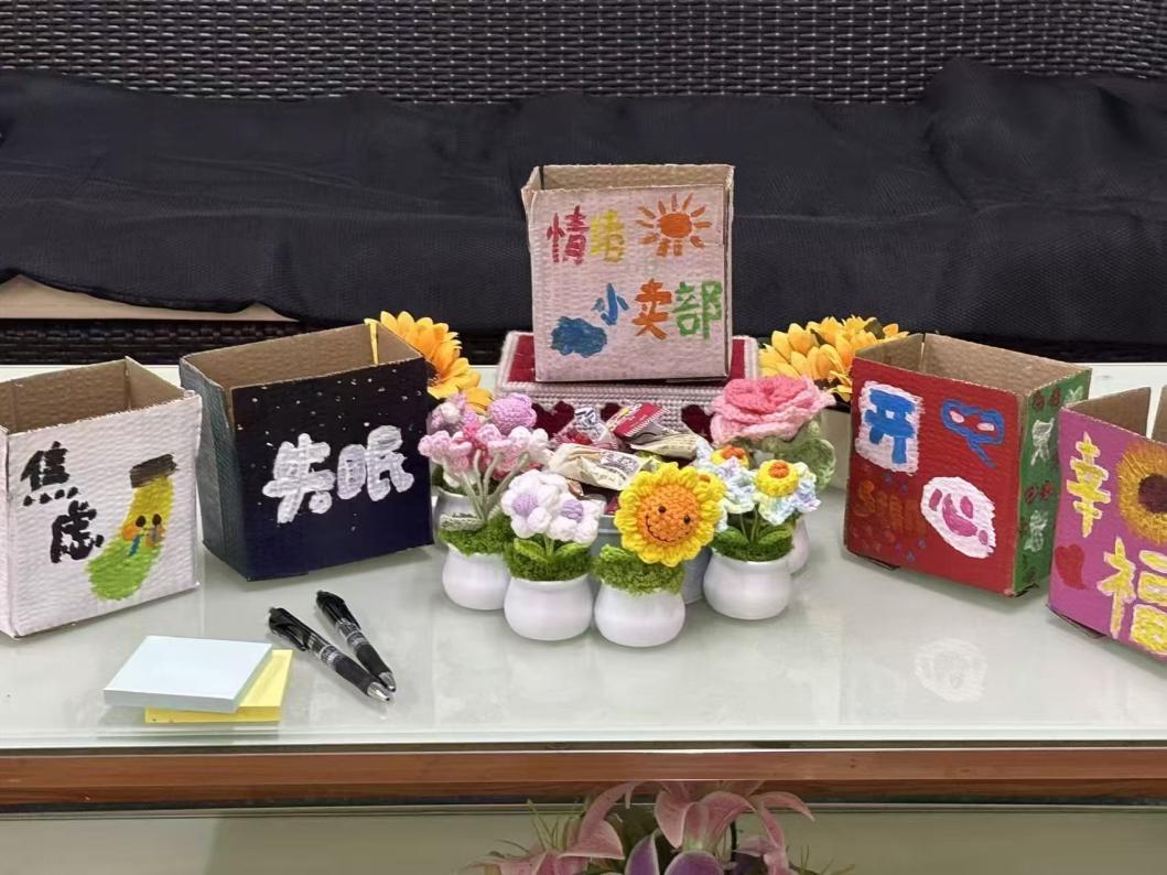 其二“情绪小卖部”面向全院学生开放,设回收盒与糖果,同学匿名书写开心或烦恼事投入盒中,每投一次便换得糖果。小小仪式承载“卸负前行”的温暖寓意,吸引众多学生参与。整场活动轻松治愈,传递“关爱自我、悦纳情绪”理念的同时,也展现了学院对学生心理健康状态的关注。