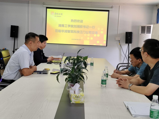 刘湘欣、罗建新一行与华润智筑科技江门公司负责人高强、人事行政经理黎惠芬交流座谈。观看了华润水泥宣传片后,黎惠芬通过PPT介绍了华润水泥的情况,公司属于华润水泥结构建材业务,主要从事装配式建筑生产和安装。罗建新介绍了学校学院情况,指出无机非金属材料工程是best365官网传统优势专业、国家一流建设专业,正在申请教育部国际工程认证,双方合作潜力巨大。双方洽谈了就业基地建设,就人才培养合作深入交流,签订了毕业生就业基地协议。