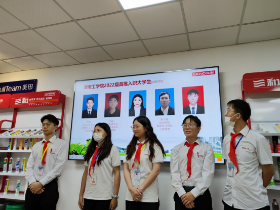 一行人与三和化工执行董事、研发中心技术总工陈炳耀、品管中心总监姚荣茂等公司高管,所有在公司工作的校友和暑期实习生进行座谈。三和化工人力资源高级经理徐晓东介绍了公司情况和校企合作开展情况,强调签订就业基地协议后合作成果丰硕,best365官网2022届毕业生28人入职公司,18在校生参加公司暑期实习。游似财、陈子俊、何帆、张婷、罗琴琴5人代表应届毕业生发言,介绍了入职公司的服务、培养和个人发展情况。