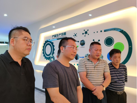 刘湘欣、罗建新一行走访了广东三和化工科技有限公司正在建设的生产基地,察看了员工食堂和宿舍,在公司总部参观了研发实验室。