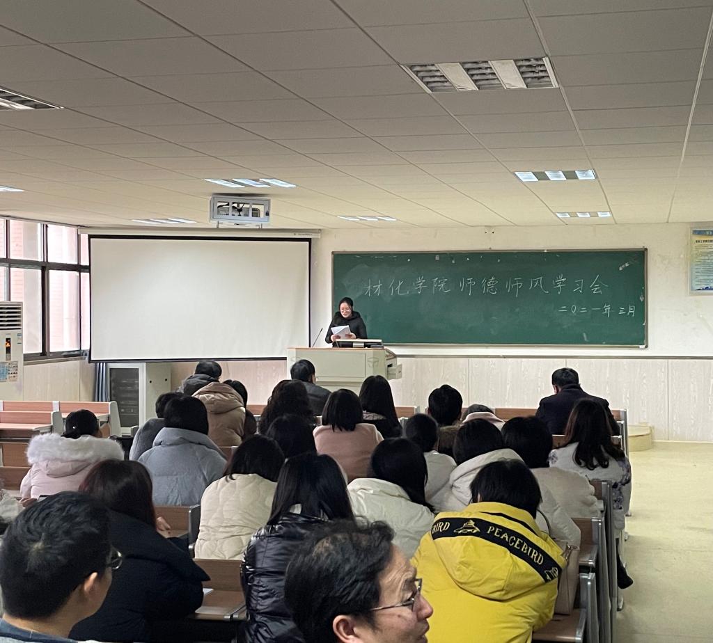 2021年3月5日,材料与化学工程学院在材化楼1301召开教职工大会暨2021年师德师风专题培训会,会议由院长胡汉祥主持。