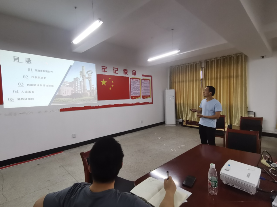 混泥土泵密封件、压裂泵密封、静电喷涂自清洁涂层、人造玉石和隔热硅橡胶等课题的申报及实验过程。熊鑫博士以《可设计型多孔材料制备及性能研究》为题,分别讲解了颗粒堆积型多孔透气材料和基于固体废弃物轻质高强陶粒两部分内容。