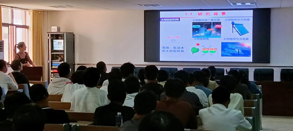 欧金花介绍她近年来开展的相关科研工作,讲述了PIZA-1薄膜衍生的 CoS1.097 @氮掺杂碳膜的制备、表征、性能及在DSSC中的应用;她还讲述了在电絮凝法处理镀镍废水及制备Ni-Fe LDH用于刚果红的高效吸附方面的研究内容。刘春泉博士以《热处理过程中氧化物夹杂与低密度钢的相互作用》为题,讲解了低密度钢在冶炼和热加工过程中夹杂物的控制及低密度钢中的传质问题,ppt生动形象,内容深入浅出,与会师生受益匪浅。