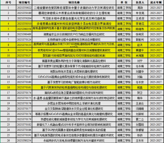 best365唯一官方网站获2025年湖南省自然科学基金项目立项清单