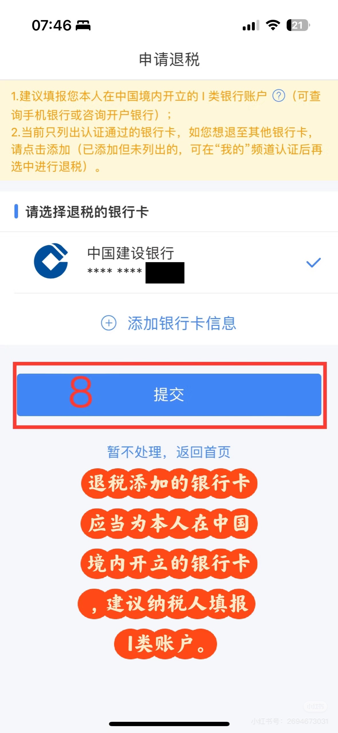 (7)办理“免申报”或“退税”或“缴税”。