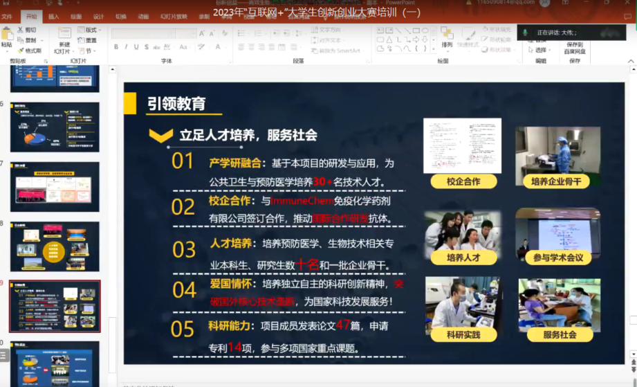 王中伟老师带领大家一起研读中国国际“互联网+”大学生创新创业大赛基本内容,结合国家级优秀获奖项目案例,对项目书的撰写、PPT的制作和路演等方面注意事项进行了详细阐述。