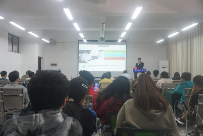 讲座由创业孵化中心主任陈晓波主持,税务局干部薛寅崧主讲,内容覆盖了税务登记、增值税发票领用与保存、税收优惠政策与申报以及税务注销等多方面的知识。宣讲团还在现场分享了许多真实案例,并与项目团队进行了充分的互动交流。