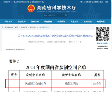 此前,湖南省科学技术厅发布了《关于公布2023年度湖南省科技企业孵化器和众创空间名单的通知》,best365官网创业园申报的“卓越湖工众创空间”在全省40家众创空间中排名第一。