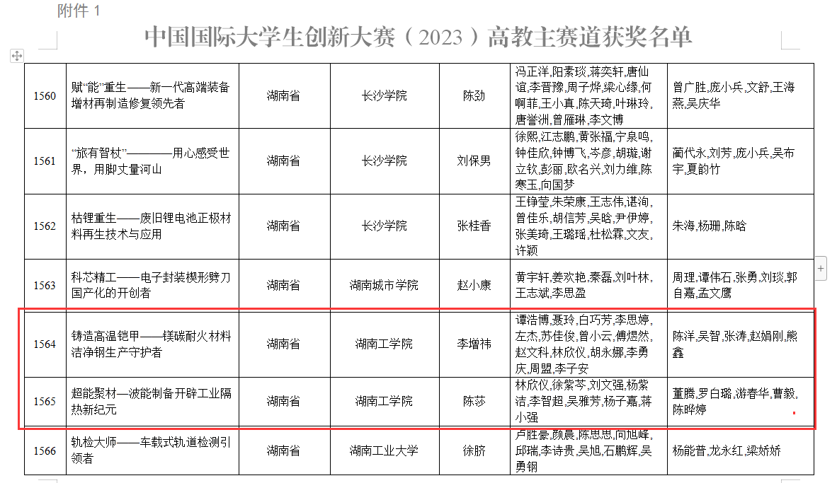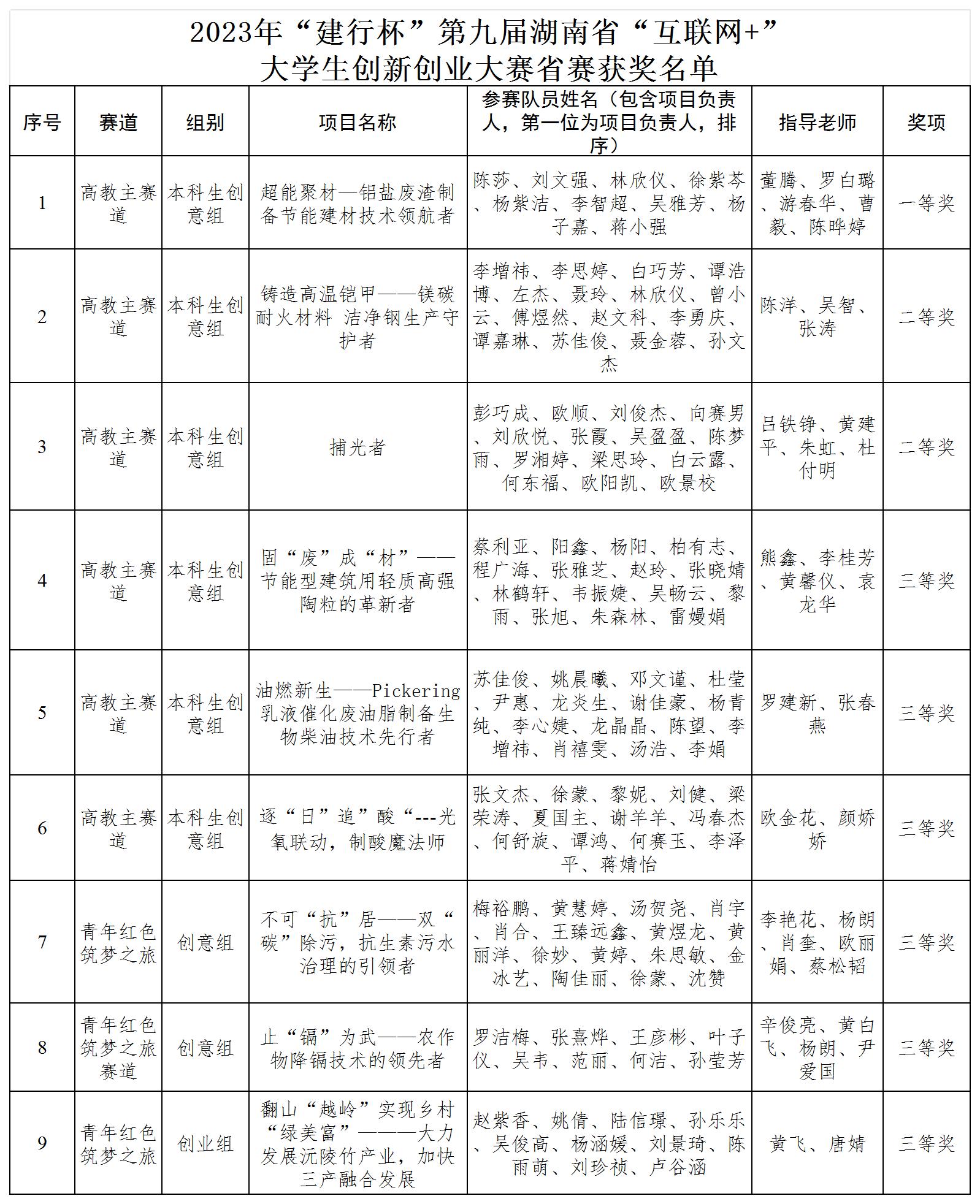近期,教育部正式公布了中国国际大学生创新大赛(2023)获奖名单,best365官网《超能聚材—铝盐废渣制备节能建材技术领航者》和《铸造高温铠甲——镁碳耐火材料洁净钢生产守护者》项目均荣获国赛铜奖,值得一提的是,这两个项目均为首次参赛便斩获殊荣。同时,在湖南省教育厅发布的第九届湖南省“互联网+”大学生创新创业大赛获奖通报中,best365官网亦取得了显著成绩,荣获省赛一等奖1项、二等奖2项、三等奖6项,总成绩在湖南省同类高校中名列前茅。