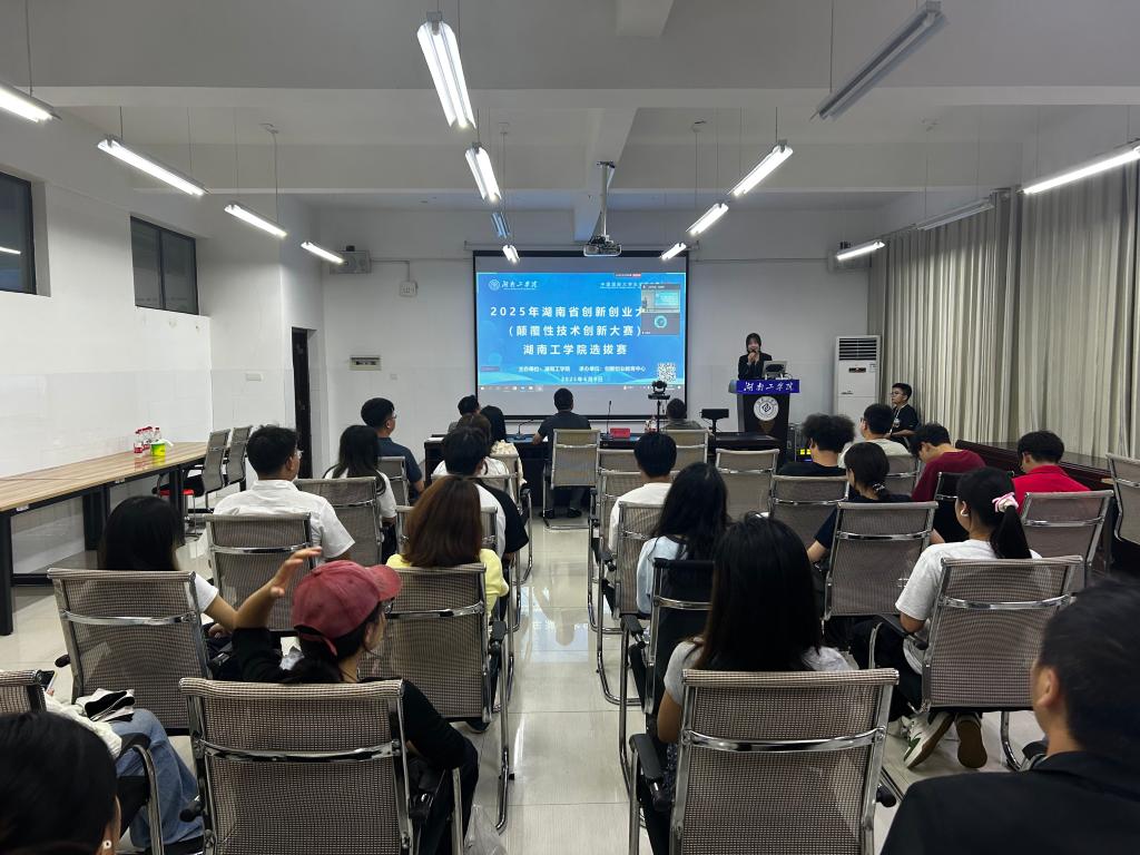 2025年6月9日下午6:30,中心在数理楼102成功举办2025年湖南省创新创业大赛(颠覆性技术创新大赛)best365唯一官方网站选拔赛。创新创业教育中心主任王小兵出席赛事。