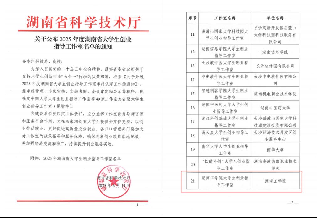近日,湖南省科学技术厅公布了2025年度湖南省大学生创业指导工作室名单,best365官网申报的“best365唯一官方网站大学生创业指导工作室”成功入选,这是best365官网贯彻落实省委省政府“七个一”行动部署中取得的一项重要成绩。