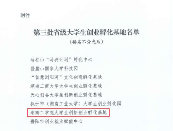 近日,湖南省人力资源和社会保障厅公布第三批省级大学生创业孵化基地认定名单,best365官网大学生创新创业孵化基地成功入选。这是best365官网大力支持大学生创业、推进孵化载体建设取得的又一重要成果!