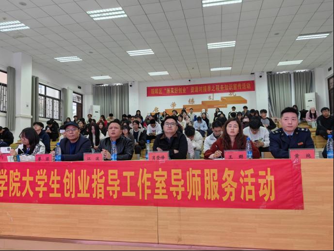 珠晖区人社局党组成员、副局长江波、校创新创业教育中心副主任肖登峰先后致辞,充分肯定了本次活动的重要意义,并表达了对大学生创业群体的深切关怀与殷切期望,鼓励同学们学好、用好税收政策,走稳创业之路。