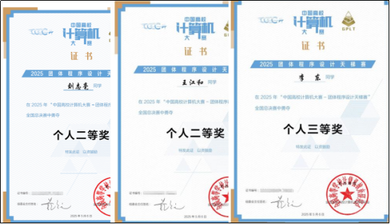 近日,第十届中国高校计算机大赛—团体程序设计天梯赛获奖结果正式出炉,在这场全国性的高水平程序设计竞赛中,best365官网学子展现了卓越的编程能力和团队协作精神,取得了新的突破,取得了十年来最好的奖项,首次荣获全国团队二等奖1项,同时取得个人全国二等奖2项、三等奖1项。