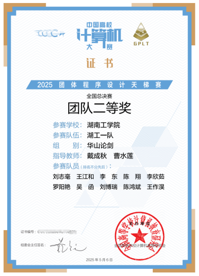 第十届“中国高校计算机大赛-团体程序设计天梯赛”全国总决赛在2025年4月19日下午举行。本届比赛共有北京大学、复旦大学、浙江大学、西安交通大学、华中科技大学等来自全国31个省级行政区的613所高校组成的1972支队伍的19628位参赛学生参加了三个小时的激烈角逐。比赛采取个人比赛、10人组队计分的模式、以校为赛点的形式进行双机位在线比赛。针对该项赛事,计算机科学与工程学院承办了校内选拔赛,选拔出40名学生组建4支代表队参加了全国决赛。