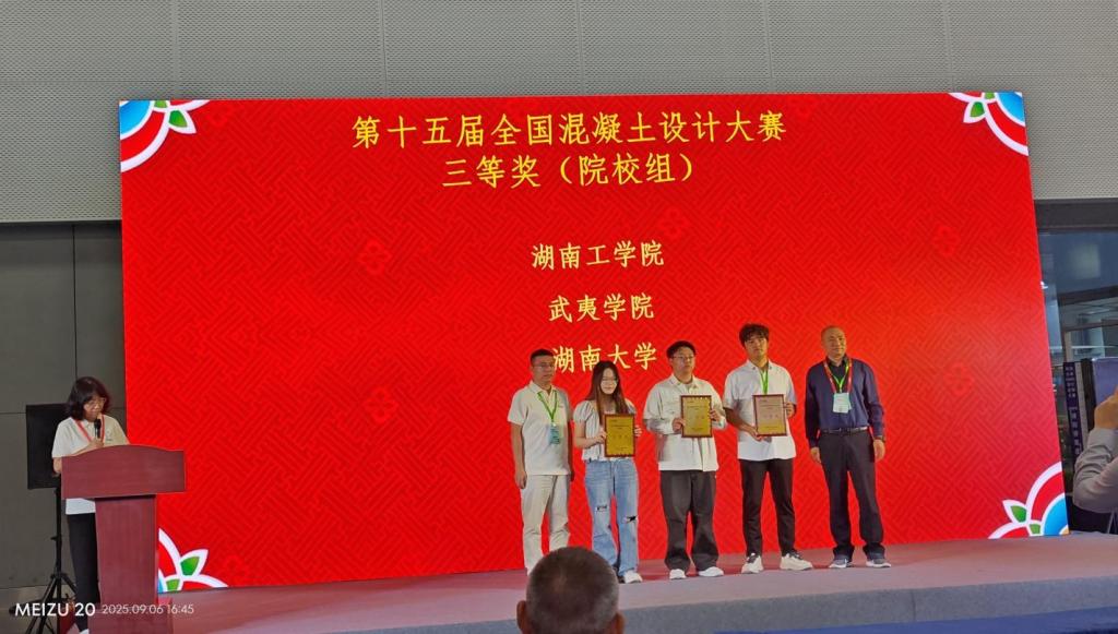 据悉,自本学期5月起,材料科学与工程学院就开始选拔参赛学生组。并经过校内的一轮比拼,选拔出优秀学生团队代表best365唯一官方网站参赛。在带队老师们的悉心指导下,参赛学生不畏艰辛,利用周末和暑假的时间,在实验室中刻苦实验,不断加深理解混凝土知识、改善设计配合比。最终取得佳绩,为学校争得了荣誉。此次优异成绩的取得,离不开学校各级领导和材料学院领导在实验室平台建设和专业实践教学方面的关心与大力支持。既是学校长期秉持“以赛促教、以赛促学、以赛促改”理念、倾力搭建多元实践平台的集中缩影,也是“课赛融合”育人模式落地生根的生动注脚。 (文/袁龙华 图/袁龙华 一审/熊鑫 二审/黄建平 三审/罗建新)