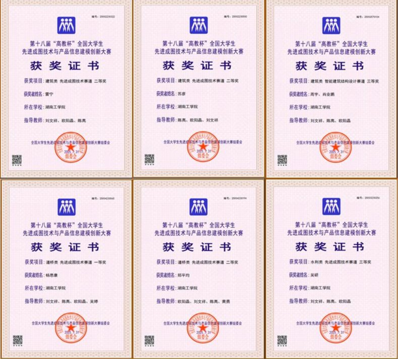 全国大学生先进成图技术与产品信息建模创新大赛是工程图学学科最高级别的国家级赛事,被誉为“图学界的奥林匹克”,位列2024年全国普通高校学科竞赛排行榜榜单第22位。经过层层选拔,我院学子24人参加湖南省预选赛,获得一等奖3项、二等奖5项、三等奖5项,12人晋级国赛。暑期经过为期1个月的集中训练和竞赛模拟,最终在全国大赛中获得一等奖1项、二等奖3项、三等奖6项以及建筑类团体二等奖。