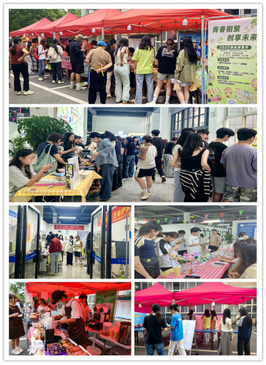活动现场,创业园前坪与北厅变身创意集市,汇聚了美食饮品、二手交易、文创产品、生活服务等多元摊位。各创业团队精心布置的展位琳琅满目,精美的手作饰品、富有创意文化设计、科技感十足的小样试品、风味独特的各地特色美食等吸引众多师生驻足。一名参与的学生表示:“集市不仅是展示作品的舞台,更是检验市场反馈的试金石。”