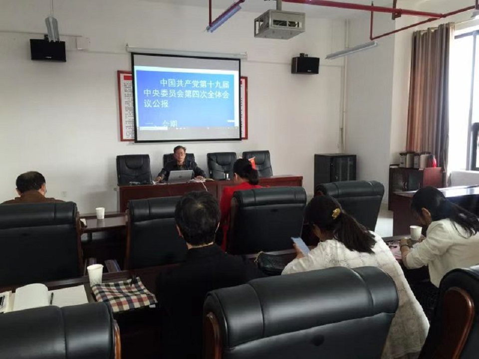 会上,刘金春组织大家学习了党的十九届四中全会精神。他强调,党的十九届四中全会对坚持和完善中国特色社会主义制度、推进国家治理体系和治理能力现代化作出了重大战略部署。在我们党的历史上,第一次用一次中央全会专门研究国家制度和国家治理问题并作出决定,这是一次具有开创性、里程碑意义的重要会议。我们要把学习贯彻党的十九届四中全会精神作为当前和今后一个时期的重要政治任务。要深刻领会和准确把握坚持和完善中国特色社会主义制度、推进国家治理体系和治理能力现代化的重大意义、丰富内涵、重点任务、工作要求。要增强“四个意识”,坚定“四个自信”,坚决做到“两个维护”,始终在思想上政治上行动上同以习近平同志为核心的党中央保持高度一致。