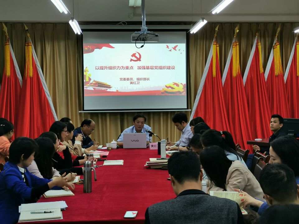 11月12日下午,党委委员、组织部部长黄红卫在外国楼103室给组织部(党校)、机关党委、档案馆联合党支部和外国语学院党员以《以提升组织力为重点,加强基层组织建设》为题上了一堂生动的党课。