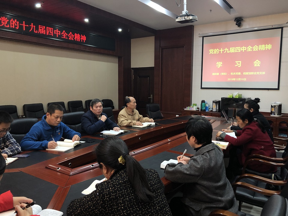 12月10日下午,组织部(党校)、机关党委、档案馆联合党支部在教学大楼12楼会议室开展了政治理论学习,支部书记刘金春主持学习会,支部全体党员参会。