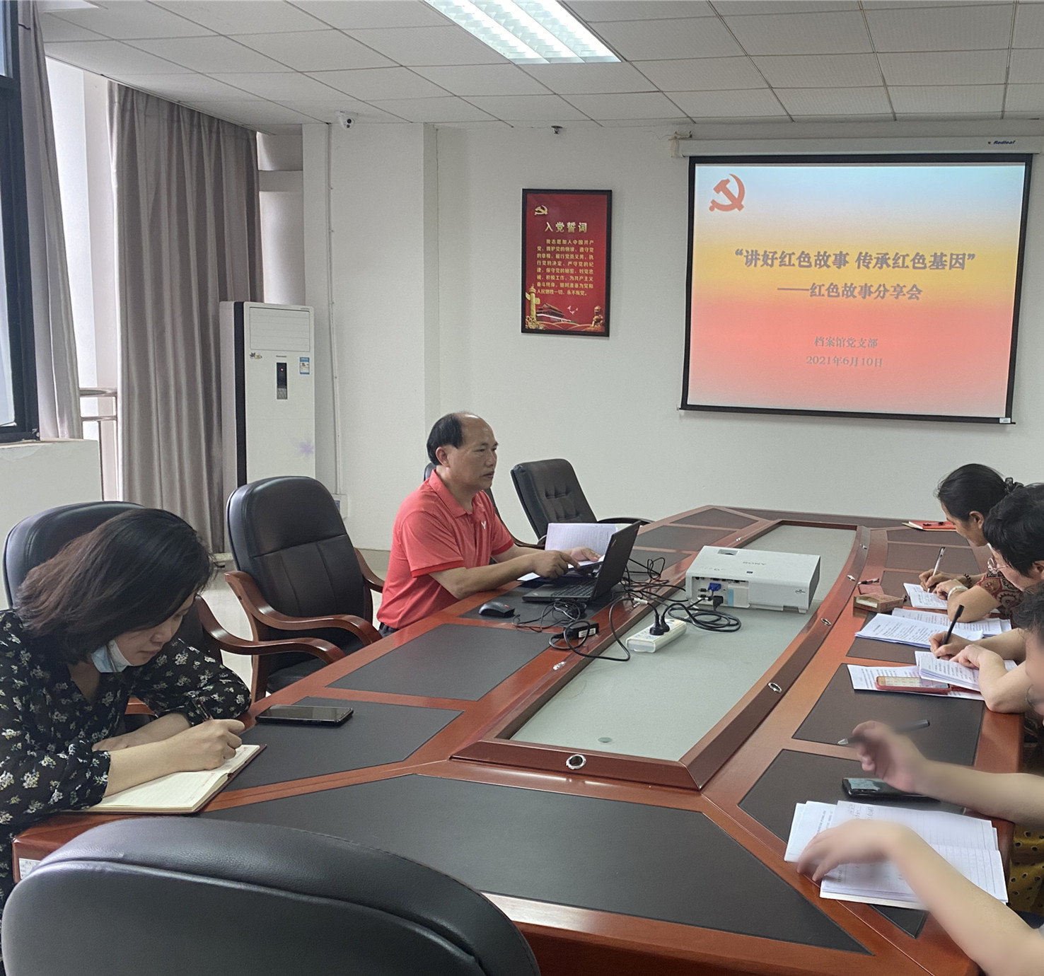 在中国共产党的百年发展历程中,有无数感天动地的红色故事。党的故事蕴含党的初心使命、彰显党的优良作风、展现党的奋斗精神。为调动大家学习党史的积极性、主动性,营造学党史、颂党恩、跟党走的浓厚氛围,组织党员干部职工在红色经典中学史明理、学史增信、学史崇德、学史力行。6月10日,档案馆党支部在党员活动室举行了“讲好红色故事 传承红色基因”红色故事分享会。党支部书记李春生主持分享会,全体党员参加。