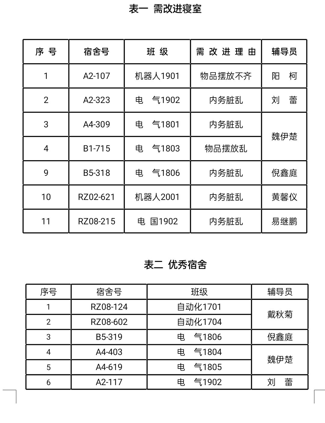 2021年上半年文明宿舍建设活动第十六周,我院“文明宿舍创建活动”工作组本着“公平、公正、公开”的原则,对我院全部宿舍进行了彻底检查。现将检查结果公布如下: