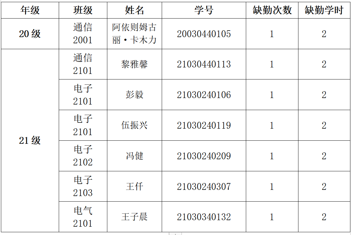 电气与信息工程学院 2021-2022-1学期第十三周课堂考勤表情况通报