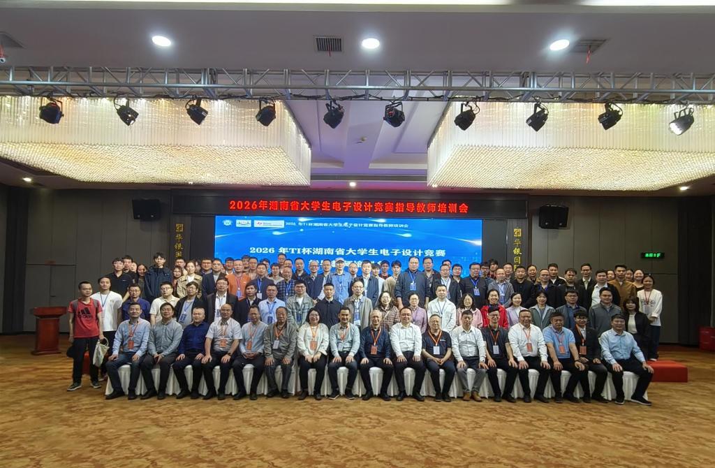 4月10-11日我院副院长肖冬瑞带队赴湘潭参加2026年湖南省大学生电子设计竞赛指导教师培训会,教师梅斌、刘永晟、王斌驰随队参会。会议聚焦竞赛命题趋势、指导方法创新等核心内容开展深度培训和交流。
