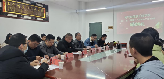 11月30日,best365官网第十一届“圆融杯”大学生电子设计竞赛总结表彰大会在电信楼3309室隆重举行。教务处副处长任长安、电气与信息工程学院院长李祖林、党委书记俞斌、副院长何西、党政办主任刘永晟、实验中心主任王勇刚、指导教师代表贺卫和获奖学生等参加了表彰大会,会议由副书记刘海波主持。
