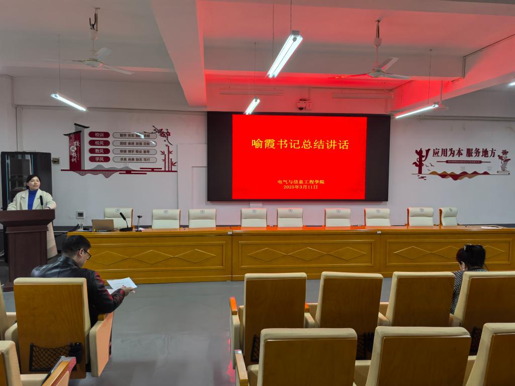 3月11日下午,电气与信息工程学院在3312会议室召开全体教职工大会暨师德师风专题培训会。电信学院全体教职工、民主党派人士参会,会议由院党委书记喻霞主持。