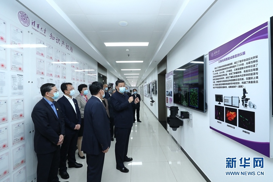 清华大学主楼二层,展示了学校近年来重点教学科研成果。习近平听取了关于增强自主创新能力、助力世界主要科学中心和创新高地建设、提高人文社会学科教育研究水平等情况介绍,对清华大学取得的成绩给予充分肯定。习近平指出,要坚持中国特色社会主义教育发展道路,充分发挥科研优势,增强学科设置的针对性,加强基础研究,加大自主创新力度,并从我国改革发展实践中提出新观点、构建新理论,努力构建中国特色、中国风格、中国气派的学科体系、学术体系、话语体系。