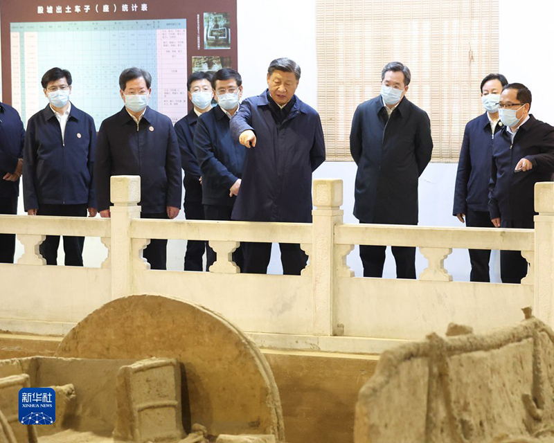 10月26日至28日,中共中央总书记、国家主席、中央军委主席习近平在陕西省延安市、河南省安阳市考察。这是28日下午,习近平在安阳市殷墟遗址考察。(新华社记者 丁林/摄)
