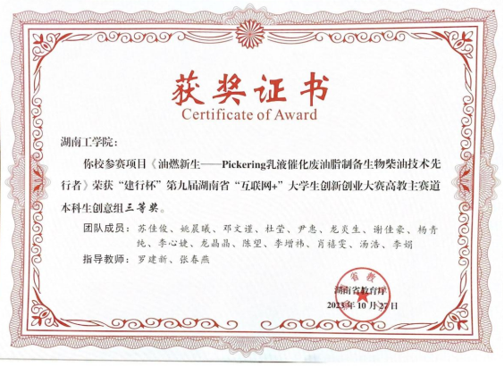 为纾解国家石化能源紧缺等困局,实现碳达峰碳中和的目标,同时突破生物柴油传统催化工艺对设备腐蚀性大,废液污染严重,难分离回收,后续处理成本高等难题,项目团队以两亲性固体酸粒子作固体酸催化剂和固体乳化剂,利用pickering乳液制备绿色生物柴油新能源思路,以保障国家能源安全、促进经济社会可持续发展。