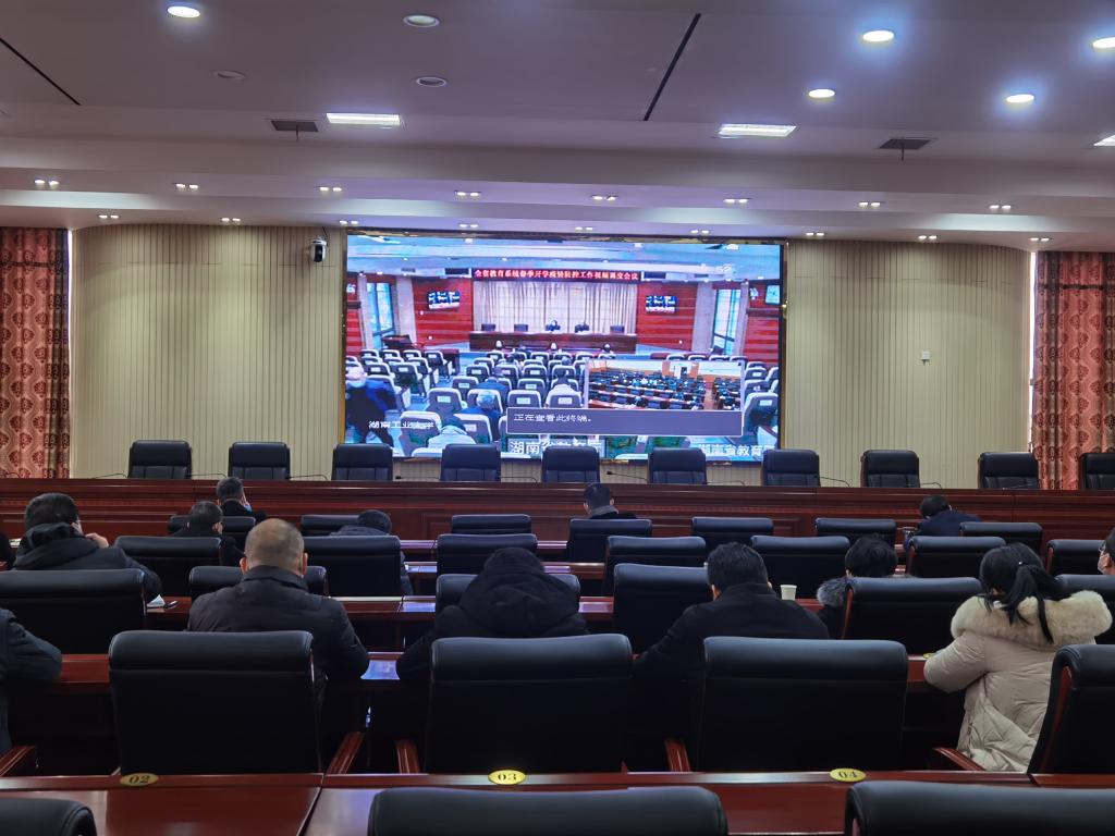 2月14日下午,省教育厅组织召开了全省教育系统春季开学疫情防控工作视频调度会。省教育厅党组成员、副厅长、省教育厅疫情防控工作领导小组常务副组长左清出席并讲话,会议由省教育厅二级巡视员雷桂平主持。校领导曹执令、刘升学、黄红卫、袁勤,相关部门主要负责人,各二级学院党委书记、院长和疫情防控办全体成员在best365官网分会场参加会议。