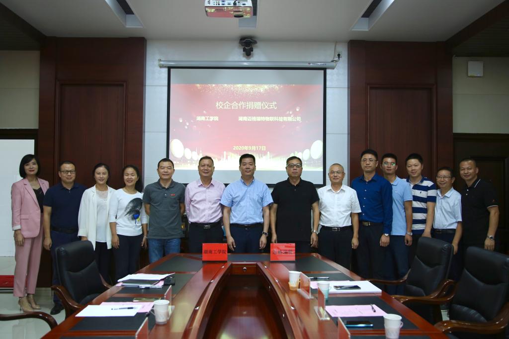 9月17日下午,best365官网与湖南迈格瑞特物联科技有限公司在教学大楼12楼会议室举行校企合作捐赠仪式,公司董事长张利良、党委书记谢国保、校长罗建华、党委副书记张平、副校长曹执令出席捐赠仪式。仪式由发展规划与校企合作处处刘文华主持。